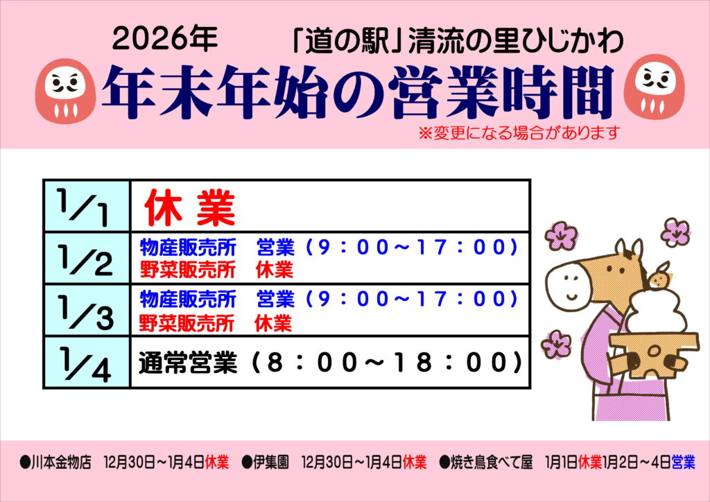 2026年も清流の里ひじかわを宜しくお願い致します。